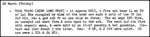 A Note from The Virtual WallThe MACV Summary for 28 March 1969 begins with the following entry: